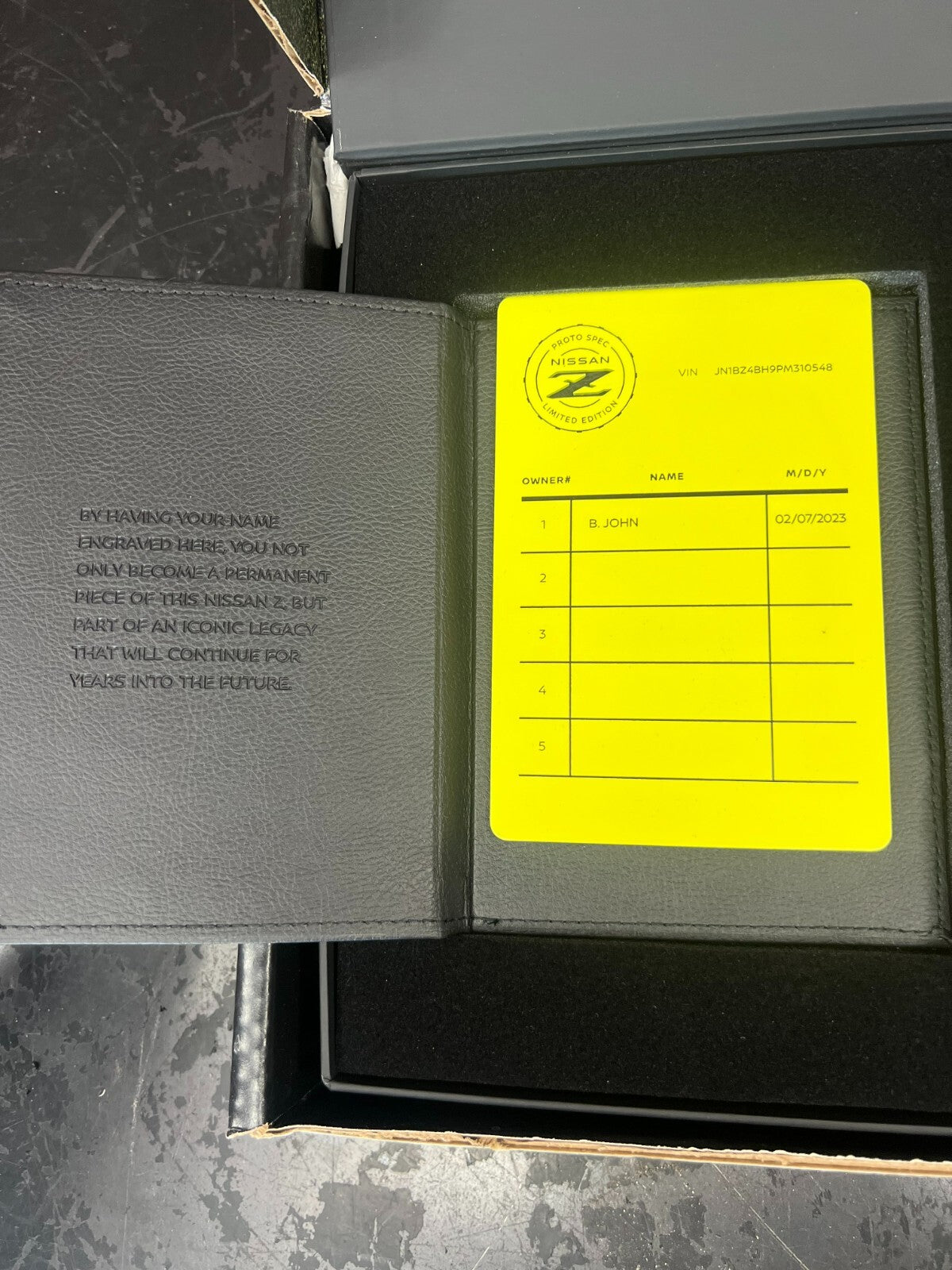 Nissan Z Proto Spec Owner Plaque/ Owner Plate/ Owner Log OEM from Nissan