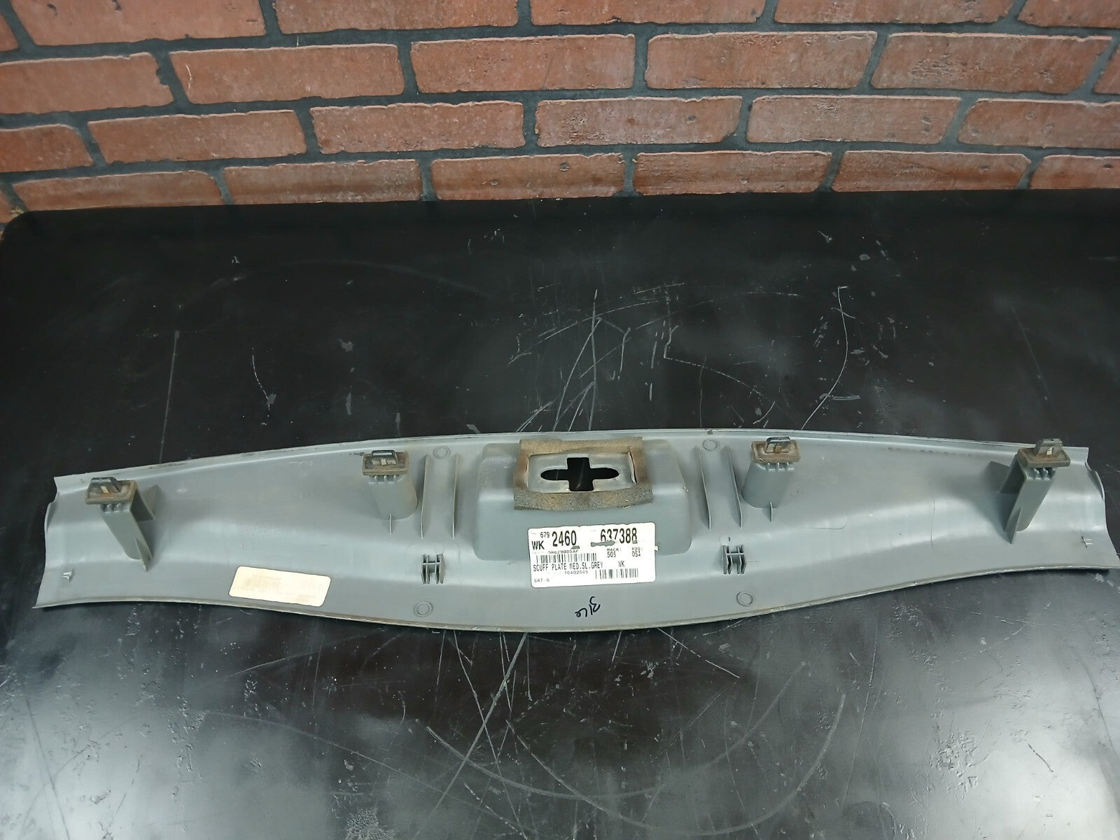 Used Rear Scuff Panel Trim Plate off of a 2007 Jeep Grand Cherokee. Has 2 broken clips